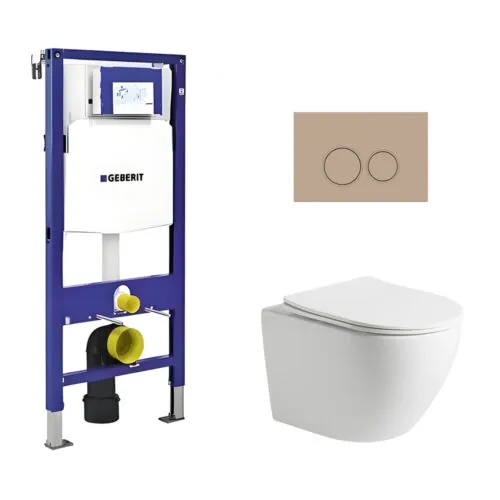Toiletset Pietro tornado flush mat wit met bedieningspaneel Ring mat beige en Geberit Duofix WC-element (UP320)