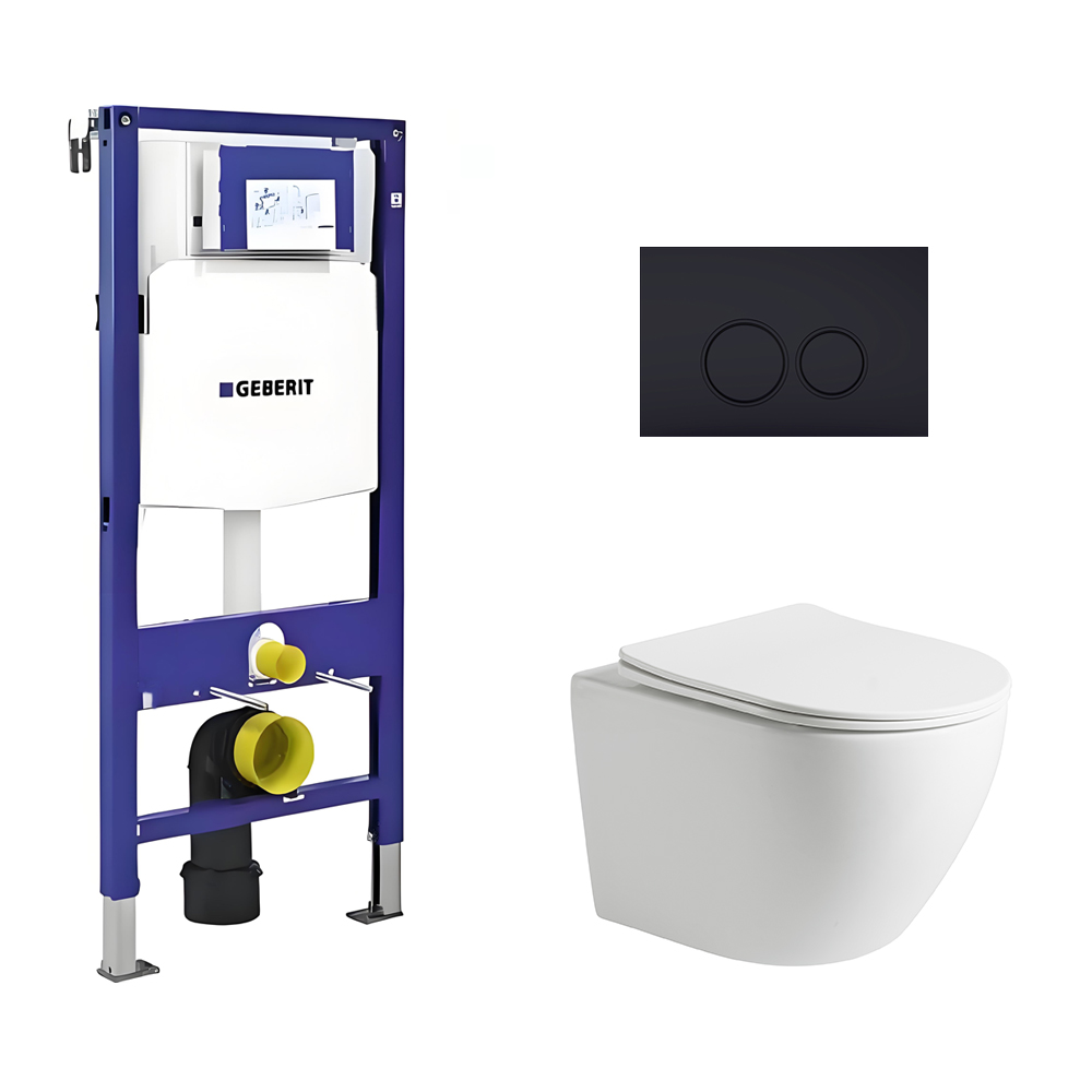Toiletset Pietro tornado flush mat wit met bedieningspaneel Ring mat zwart en Geberit Duofix WC-element (UP320)