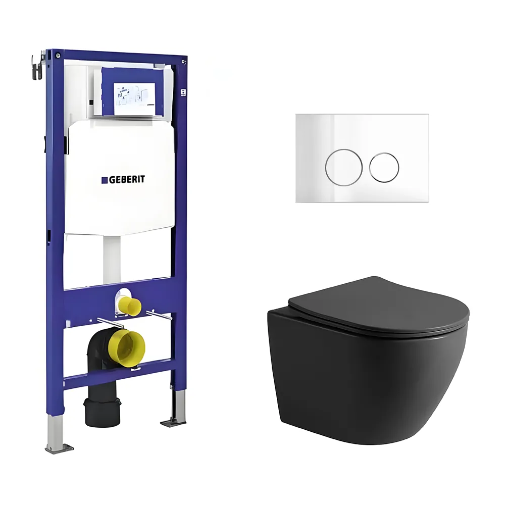 Toiletset Pietro tornado flush mat zwart met bedieningspaneel Flat chroom en Geberit Duofix WC-element (UP320)