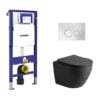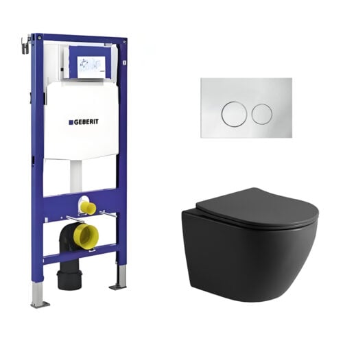 Toiletset Pietro tornado flush mat zwart met bedieningspaneel Flat chroom glanzend RVS en Geberit Duofix WC-element (UP320)