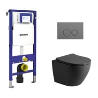 Toiletset Pietro tornado flush mat zwart met bedieningspaneel Flat gun metal en Geberit Duofix WC-element (UP320)