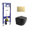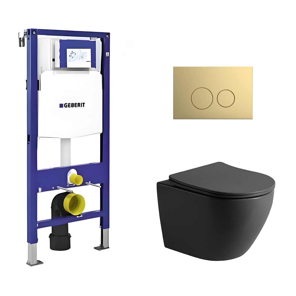 Toiletset Pietro tornado flush mat zwart met bedieningspaneel Flat mat goud en Geberit Duofix WC-element (UP320)