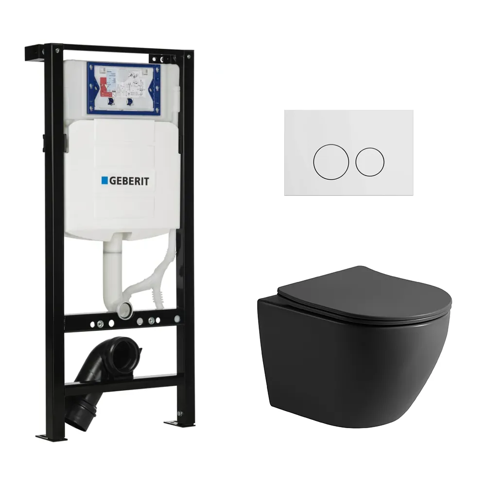 Toiletset Pietro tornado flush mat zwart met bedieningspaneel Flat mat wit en Plieger Duofix WC-element (UP320)