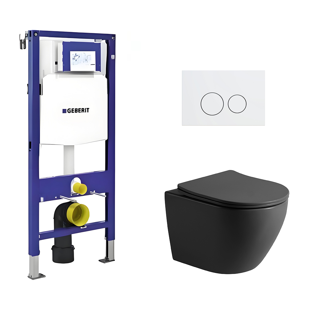 Toiletset Pietro tornado flush mat zwart met bedieningspaneel flat mat wit RVS en Geberit Duofix WC-element (UP320)