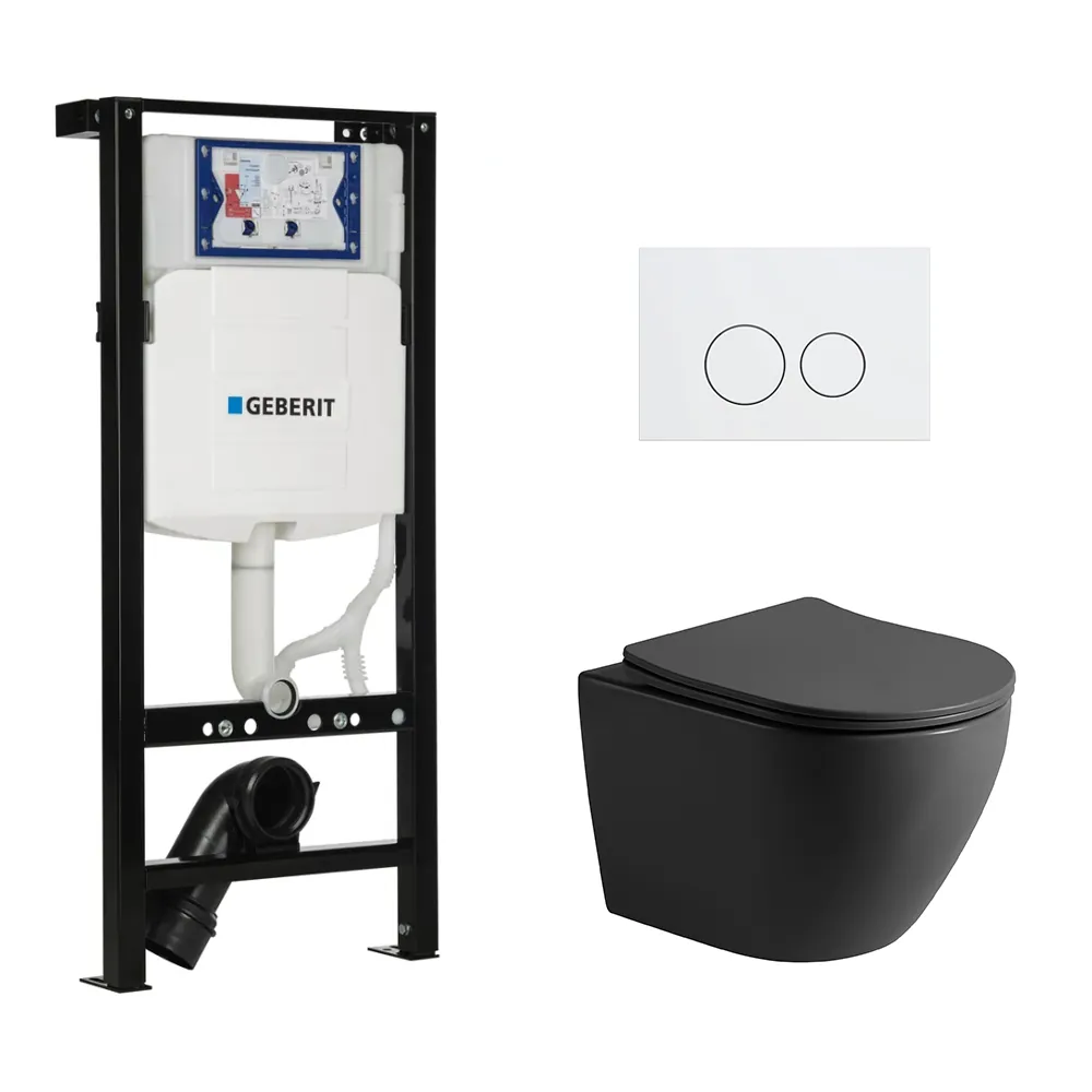 Toiletset Pietro tornado flush mat zwart met bedieningspaneel flat mat wit RVS en Plieger Duofix WC-element (UP320)