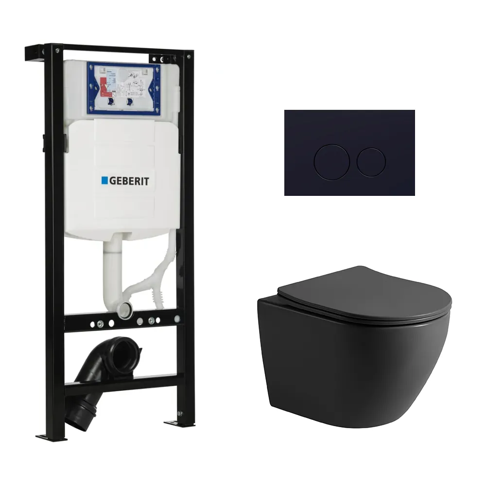 Toiletset Pietro tornado flush mat zwart met bedieningspaneel flat mat zwart en Plieger Duofix WC-element (UP320)