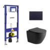 Toiletset Pietro tornado flush mat zwart met bedieningspaneel Flat mat zwart RVS en Geberit Duofix WC-element (UP320)