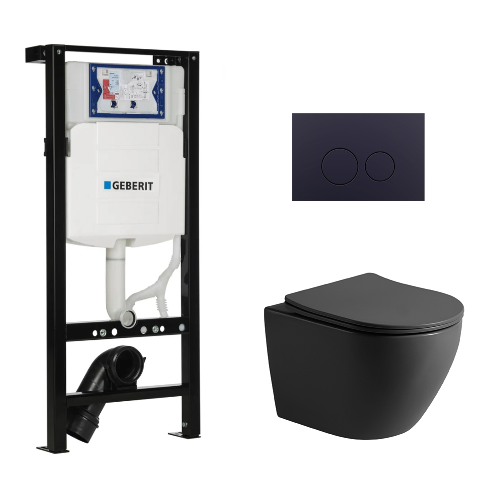 Toiletset Pietro tornado flush mat zwart met bedieningspaneel Flat mat zwart RVS en Plieger Duofix WC-element (UP320)