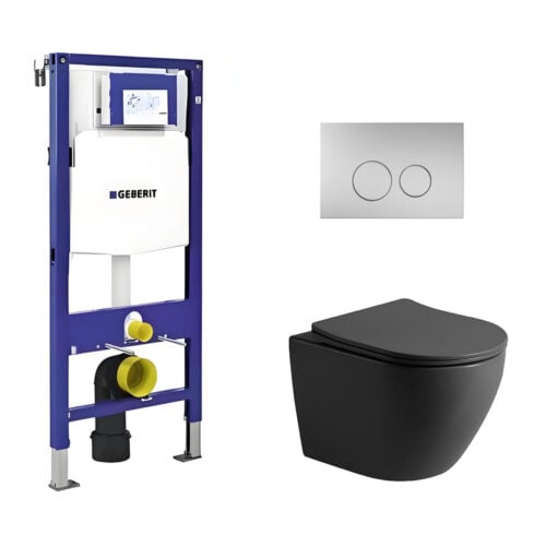 Toiletset Pietro tornado flush mat zwart met bedieningspaneel Flat RVS en Geberit Duofix WC-element (UP320)