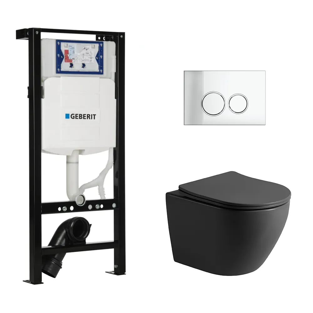 Toiletset Pietro tornado flush mat zwart met bedieningspaneel Ring chroom en Plieger Duofix WC-element (UP320)