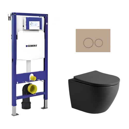 Toiletset Pietro tornado flush mat zwart met bedieningspaneel Ring mat beige en Geberit Duofix WC-element (UP320)