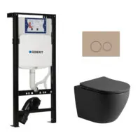 Toiletset Pietro tornado flush mat zwart met bedieningspaneel Ring mat beige en Plieger Duofix WC-element (UP320)