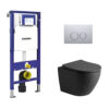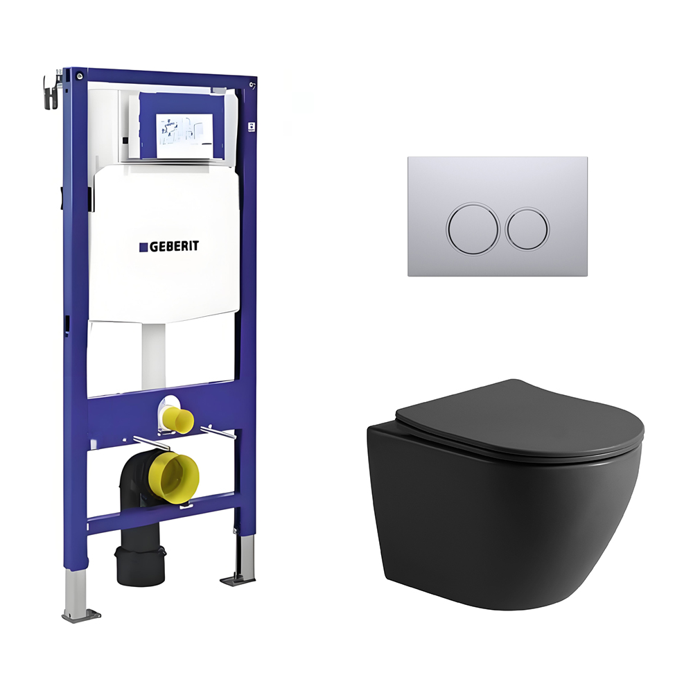 Toiletset Pietro tornado flush mat zwart met bedieningspaneel Ring RVS en Geberit Duofix WC-element (UP320)