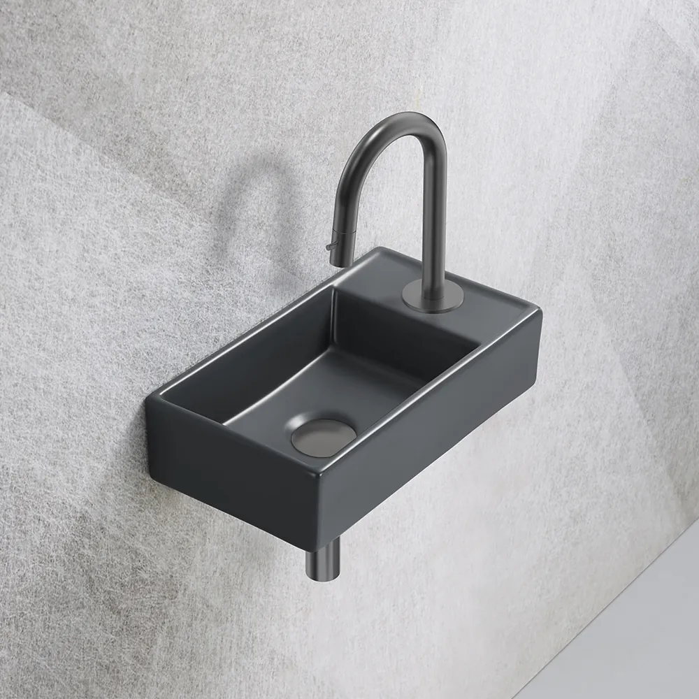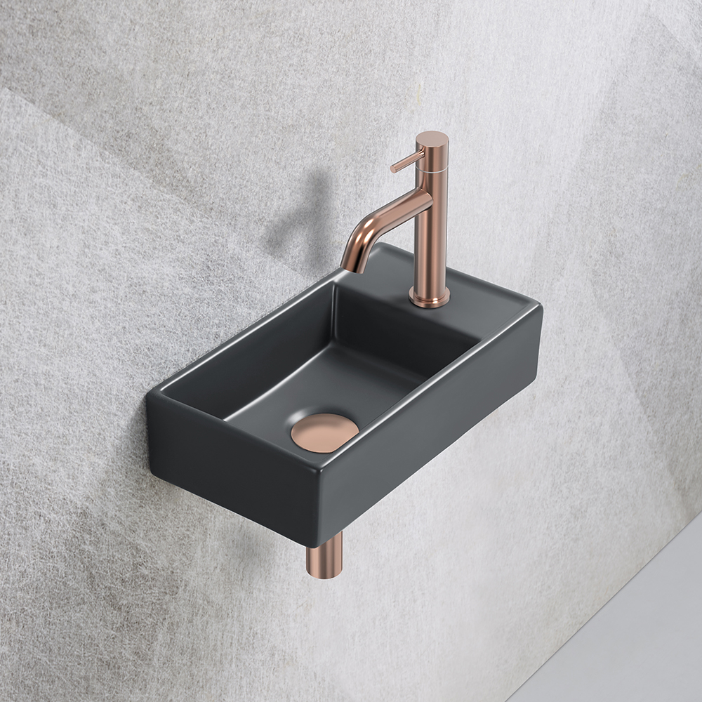 Fontein Ora 41x22x10cm mat antraciet inclusief afvoerplug rechts
