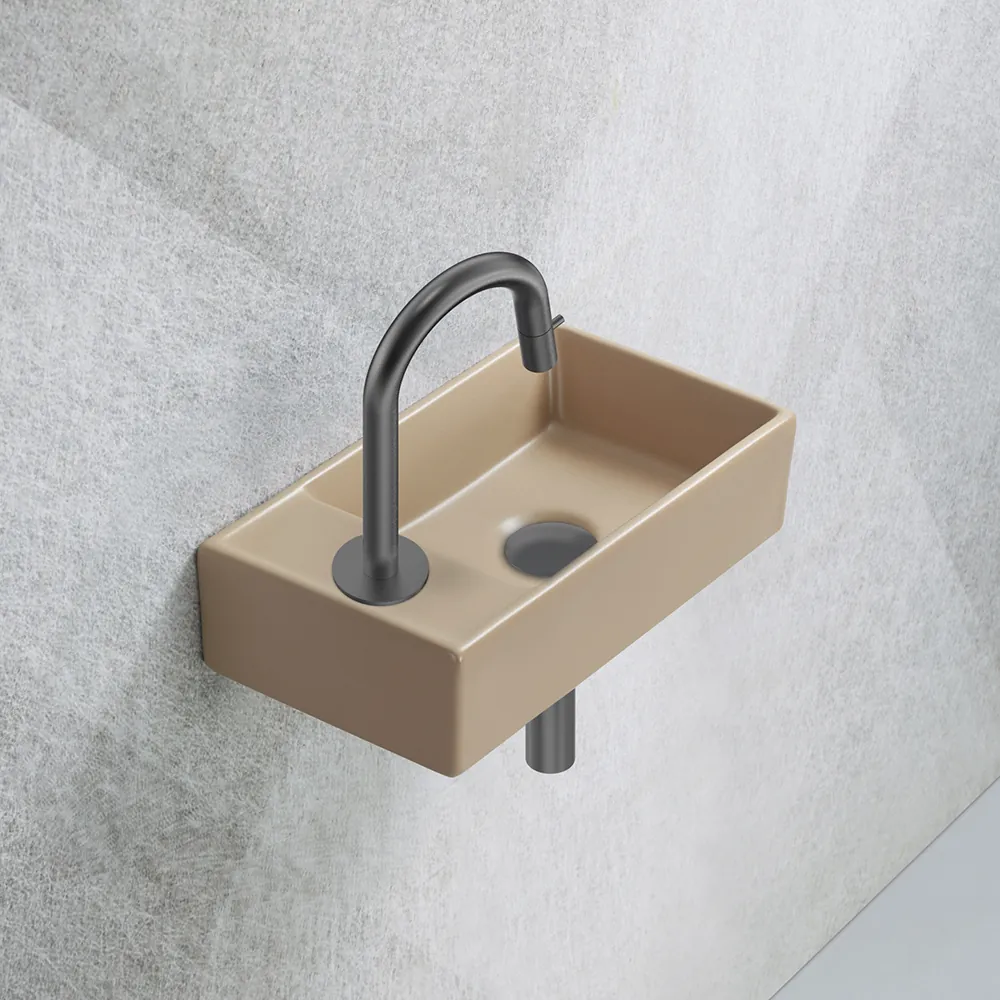 Fontein Ora 41x22x10cm mat beige inclusief afvoerplug links