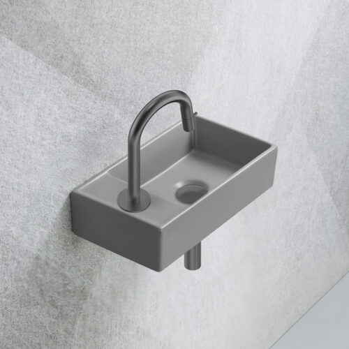 Fontein Ora 41x22x10cm mat grijs inclusief afvoerplug links