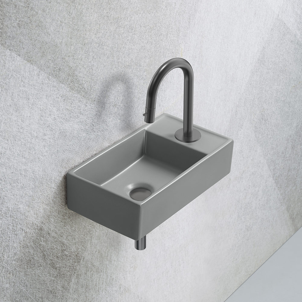 Fontein Ora 41x22x10cm mat grijs inclusief afvoerplug rechts