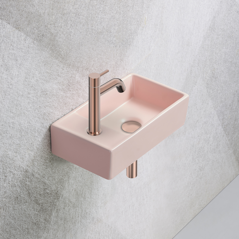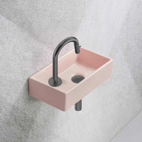 Fontein Ora 41x22x10cm mat roze inclusief afvoerplug links