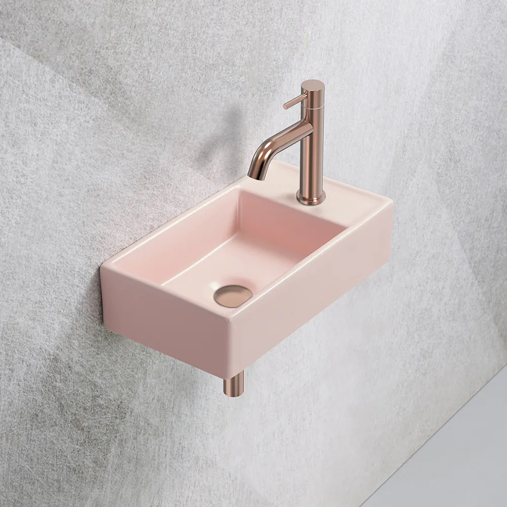 Fontein Ora 41x22x10cm mat roze inclusief afvoerplug rechts