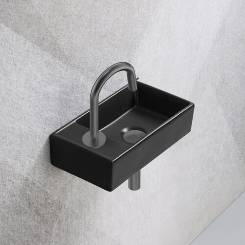 Fontein Ora 41x22x10cm mat zwart inclusief afvoerplug links