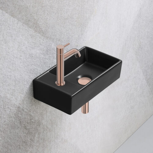 - Met afvoerplug: clickwaste afvoerplug in de kleur mat zwart