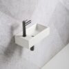 Fonteinset Mia 40.5x20x10.5cm mat wit links inclusief fontein kraan, sifon en afvoerplug gun metal is ontworpen om een strakke en moderne look te geven aan uw toilet. De vierkante fontein is gemaakt van hoogwaardig keramiek dat is afgewerkt met een coating waardoor zowel vuil als kalk niet makkelijk kan hechten. De fonteinkraan gun metal één-greeps bediening is voorzien van keramisch schijven zodat het verplaatsen van de hendel soepel en hoogwaardig aanvoelt.
