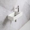 Fonteinset Mia 40.5x20x10.5cm mat wit rechts inclusief fontein kraan, sifon en afvoerplug RVS is ontworpen om een strakke en moderne look te geven aan uw toilet. De vierkante fontein is gemaakt van hoogwaardig keramiek dat is afgewerkt met een coating waardoor zowel vuil als kalk niet makkelijk kan hechten. De fonteinkraan RVS één-greeps bediening is voorzien van keramisch schijven zodat het verplaatsen van de hendel soepel en hoogwaardig aanvoelt.