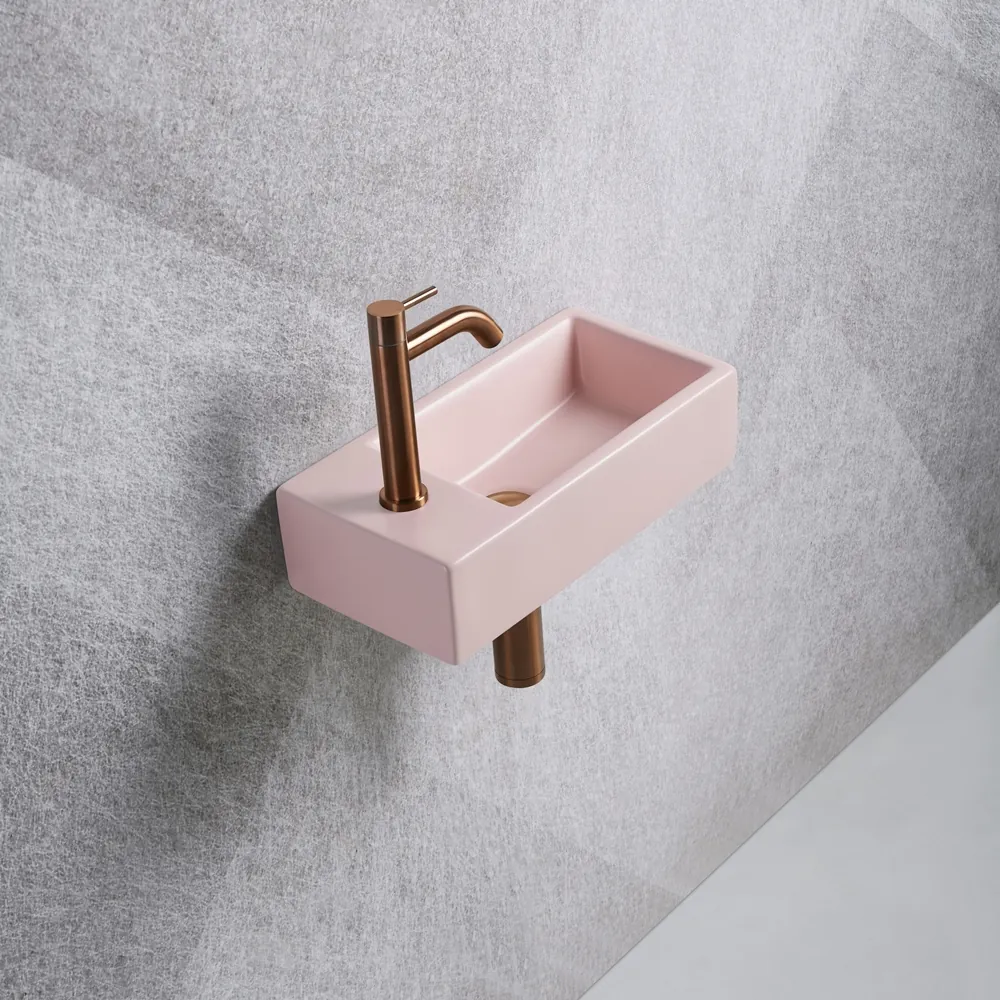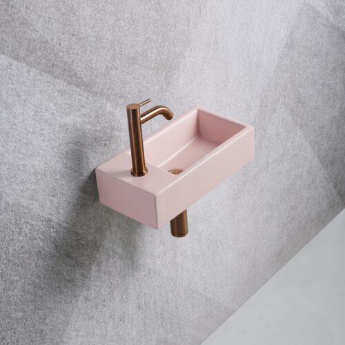 Fontein Mia 40.5x20x10.5cm mat roze inclusief afvoerplug links