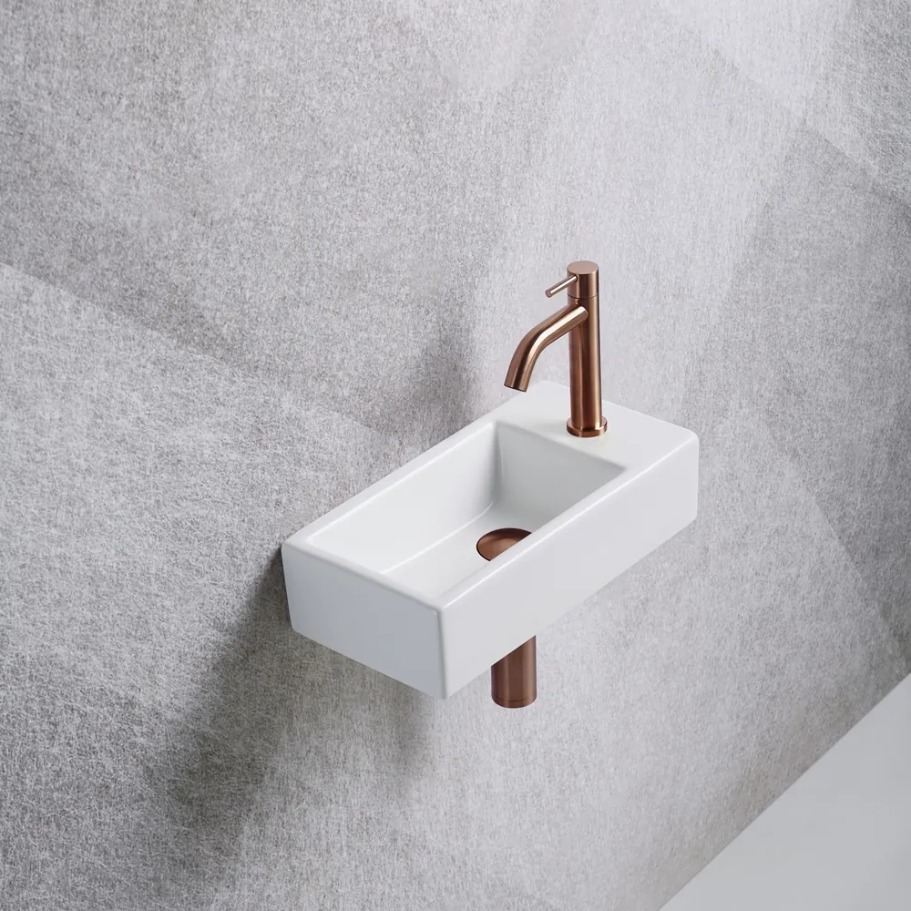De serie Mia is in verschillende kleuren en afwerkingen te verkrijgen en zijn perfect te combineren met onze fonteinkranen en sifons. Tevens kunt u kiezen uit een van onze universele afvoerpluggen die geschikt zijn voor dit type fontein.