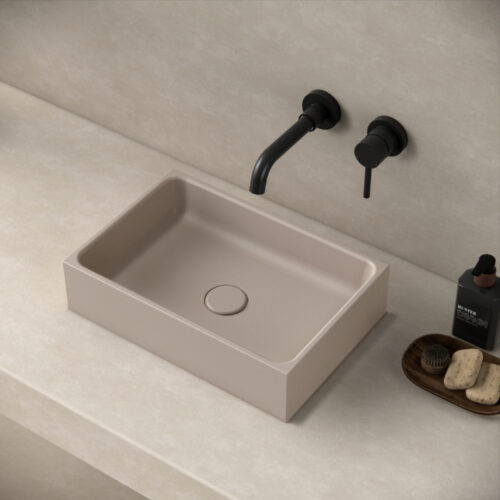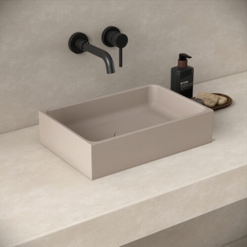 Waskom Orion 41.5x28x10cm beton rechthoek beige inclusief afvoerplug
