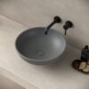 Waskom Thano 44x44x14.5cm beton rond donker grijs inclusief afvoerplug