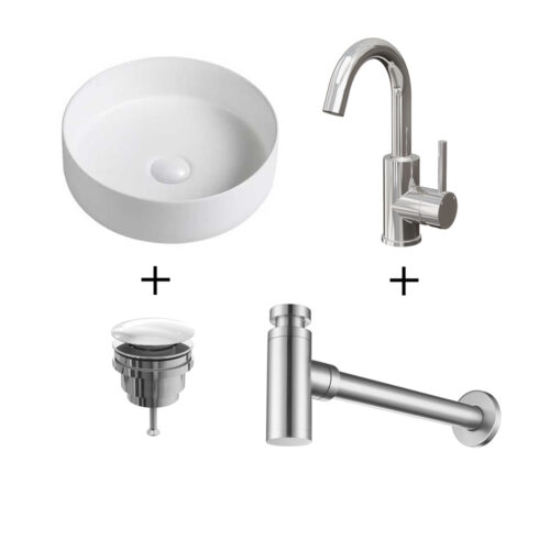 ✔ Compleet pakket met waskom, wastafelkraan, afvoerplug en sifon