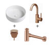 Wastafelset Anna 35x35x12cm mat wit inclusief wastafelkraan draaibaar, sifon en afvoerplug copper