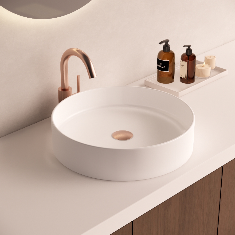 De ronde waskom is gemaakt van hoogwaardig keramiek dat is afgewerkt met een coating waardoor zowel vuil als kalk niet makkelijk kan hechten. Het ronde design past naadloos in elke badkamer en is met elk badkamermeubel te combineren.