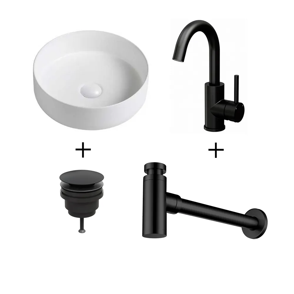 ✔ Compleet pakket met waskom, wastafelkraan, afvoerplug en sifon