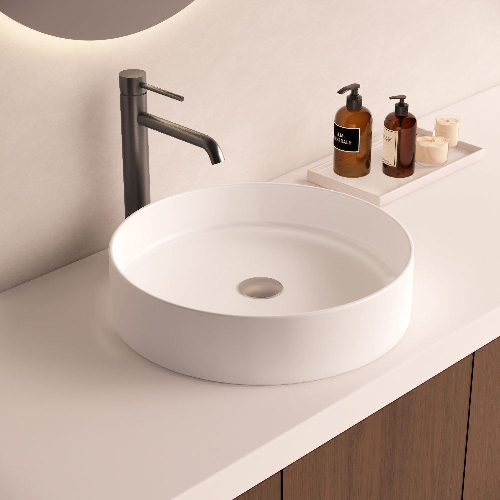 De ronde waskom is gemaakt van hoogwaardig keramiek dat is afgewerkt met een coating waardoor zowel vuil als kalk niet makkelijk kan hechten. Het ronde design past naadloos in elke badkamer en is met elk badkamermeubel te combineren.