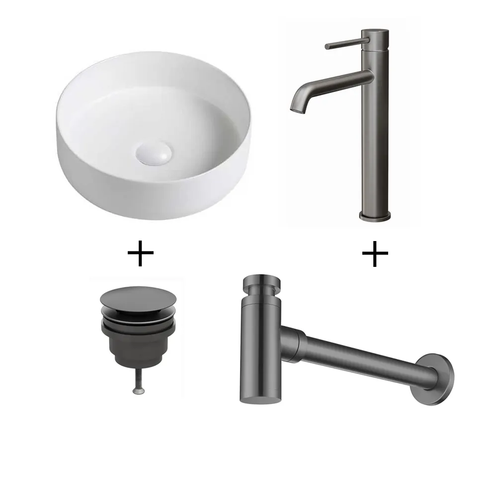 ✔ Compleet pakket met waskom, wastafelkraan, afvoerplug en sifon