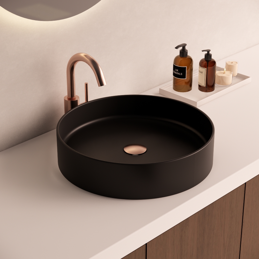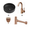 Wastafelset Anna 35x35x12cm mat zwart inclusief wastafelkraan draaibaar, sifon en afvoerplug copper