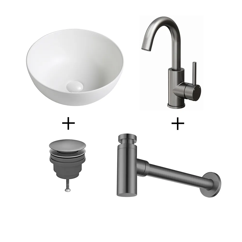 ✔ Compleet pakket met waskom, wastafelkraan, afvoerplug en sifon