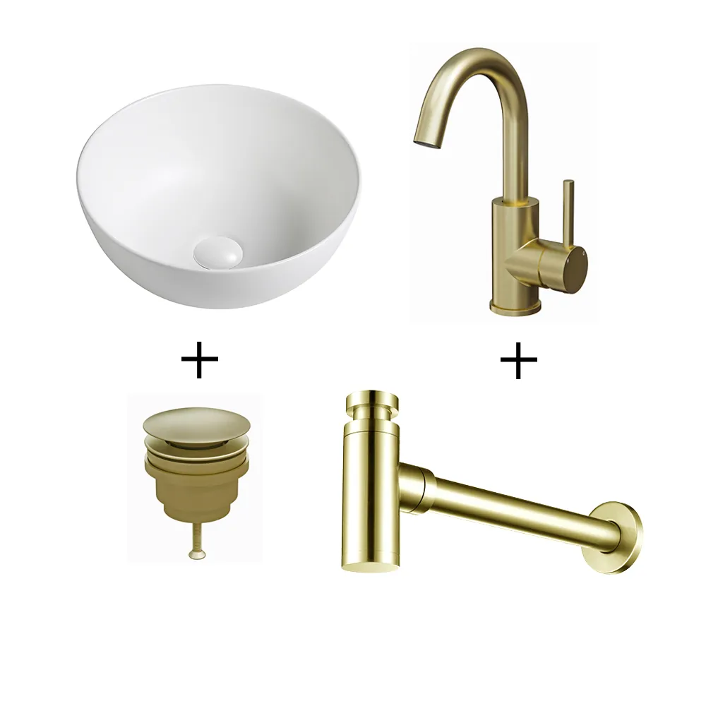 ✔ Compleet pakket met waskom, wastafelkraan, afvoerplug en sifon