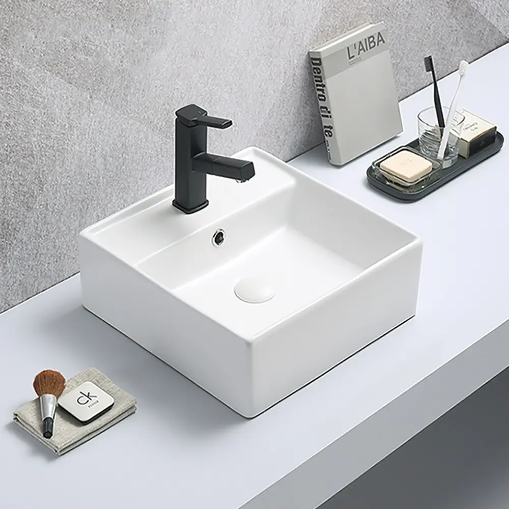 Wastafel Isabella 40x40x15cm mat wit met 1 kraangat en overloop inclusief afvoerplug